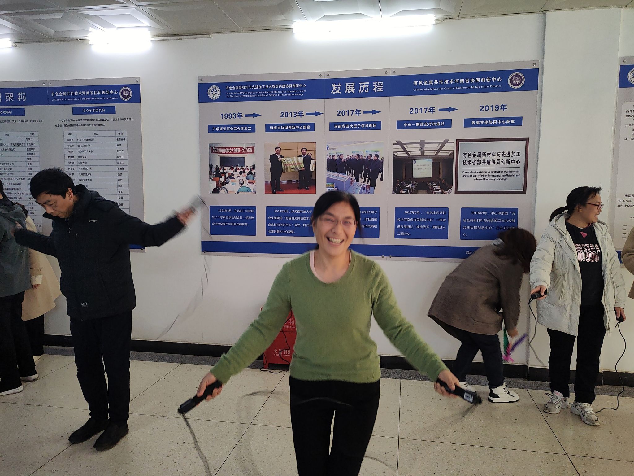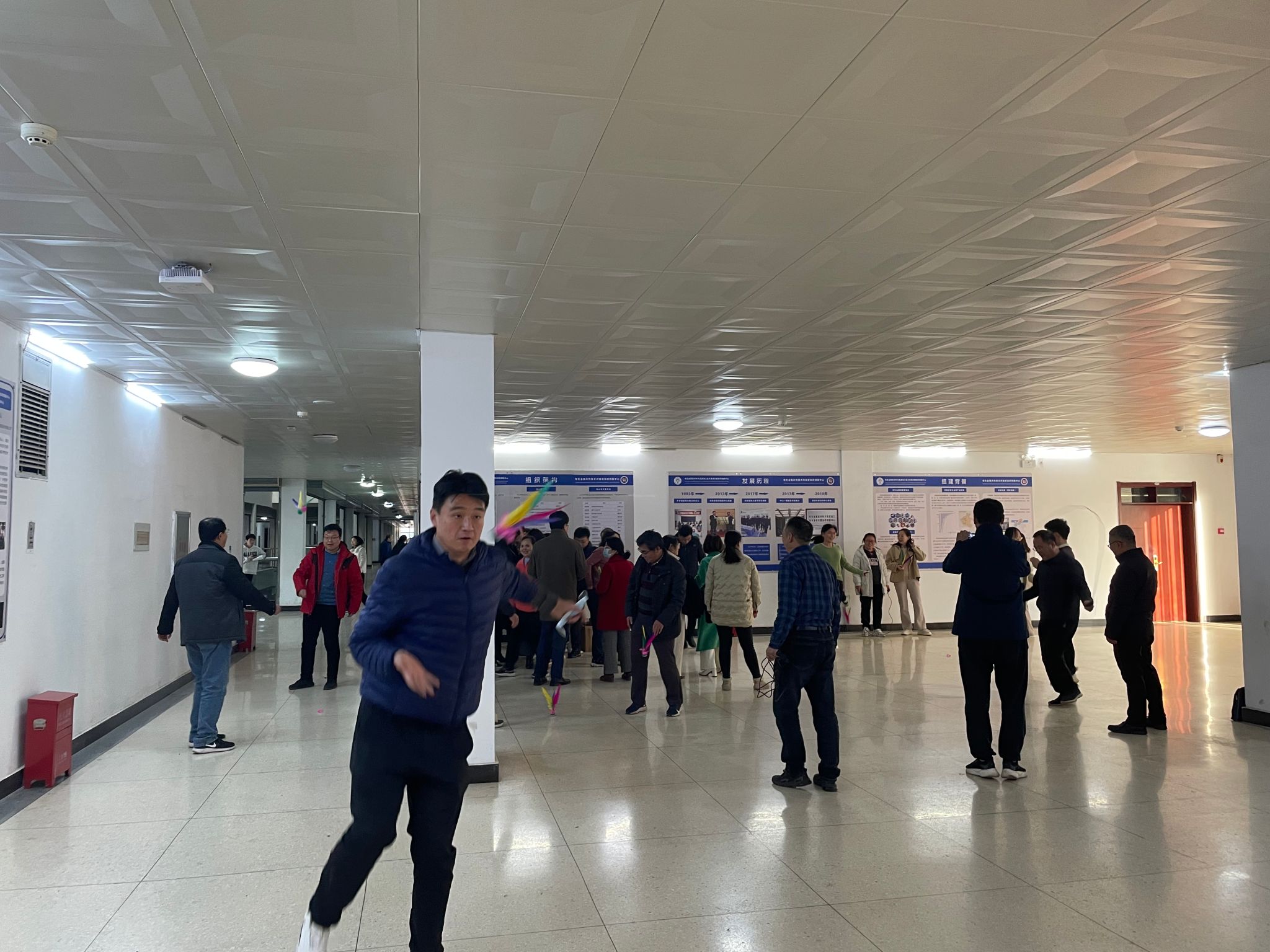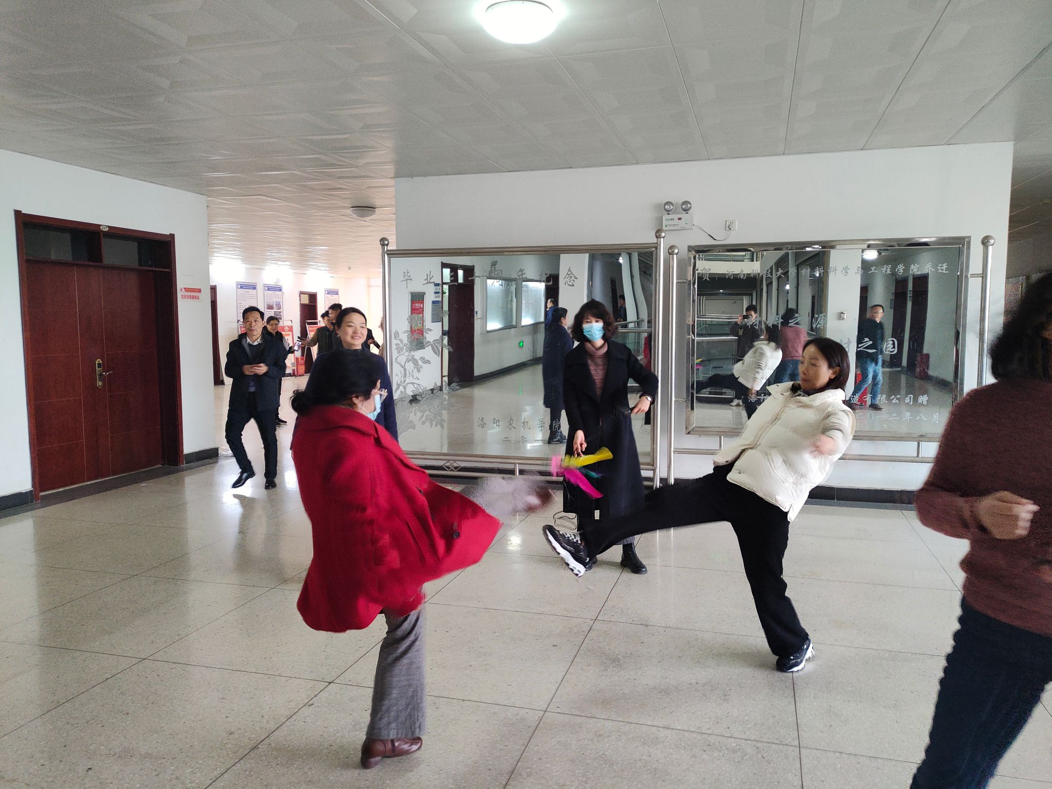 教职工们在繁忙的工作之余,走出工作间,积极体验踢毽子、跳绳等趣味活动,在运动中感受到快乐和乐趣。健身比赛现场不时爆发出欢声笑语。