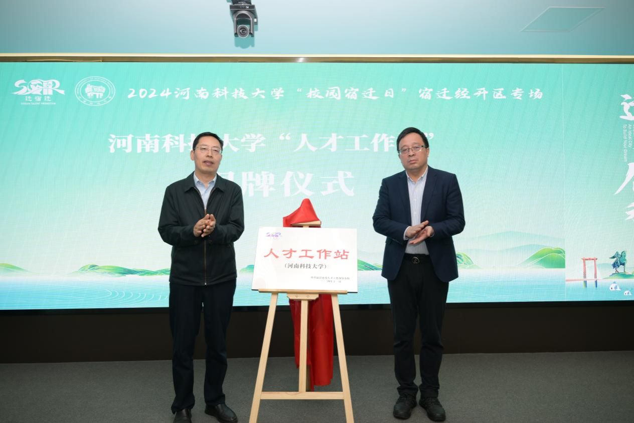 “宿迁人才工作站”揭牌,吴宏兵局长为朱双霞、李芳两位老师颁发“招才引智大使”聘书,与会人员共同观看了宿迁经济技术开发区宣传片《向未来 共辉煌》,市人社局进行人才政策专题推介,聚灿光电科技(宿迁)有限公司、佛山市海天(宿迁)调味食品有限公司等上市企业进行了人才引进专场推介。