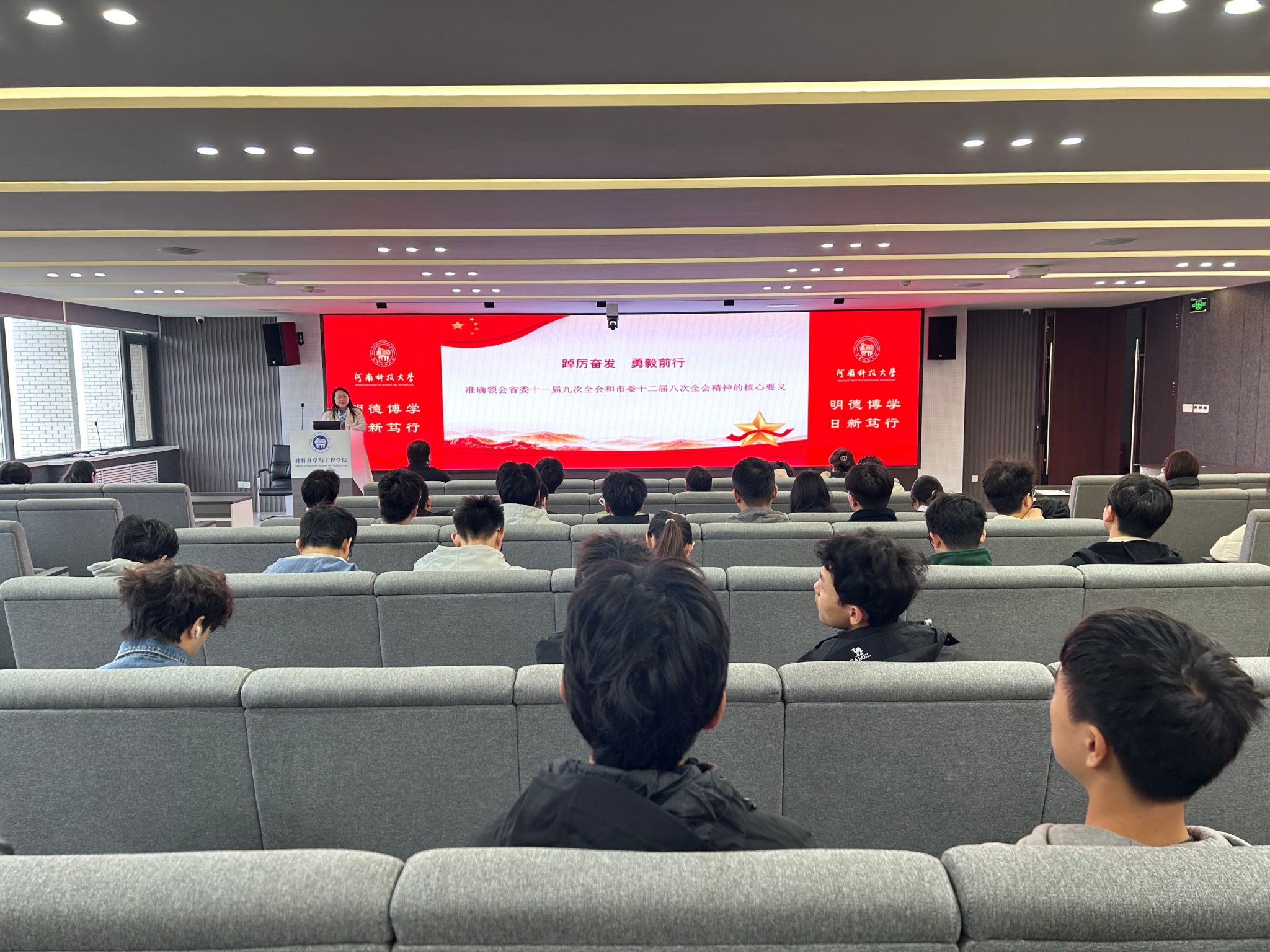 于工科一号楼5059学术报告厅成功举办了一场“理论讲堂”专题讲座。本次讲座特别邀请学校理论讲堂宣讲团成员、马克思主义学院刘晓丽老师作题为《踔厉奋发 勇毅前行——准确领会省委十一届九次全会和市委十二届八次全会精神的核心要义》的专题讲座。