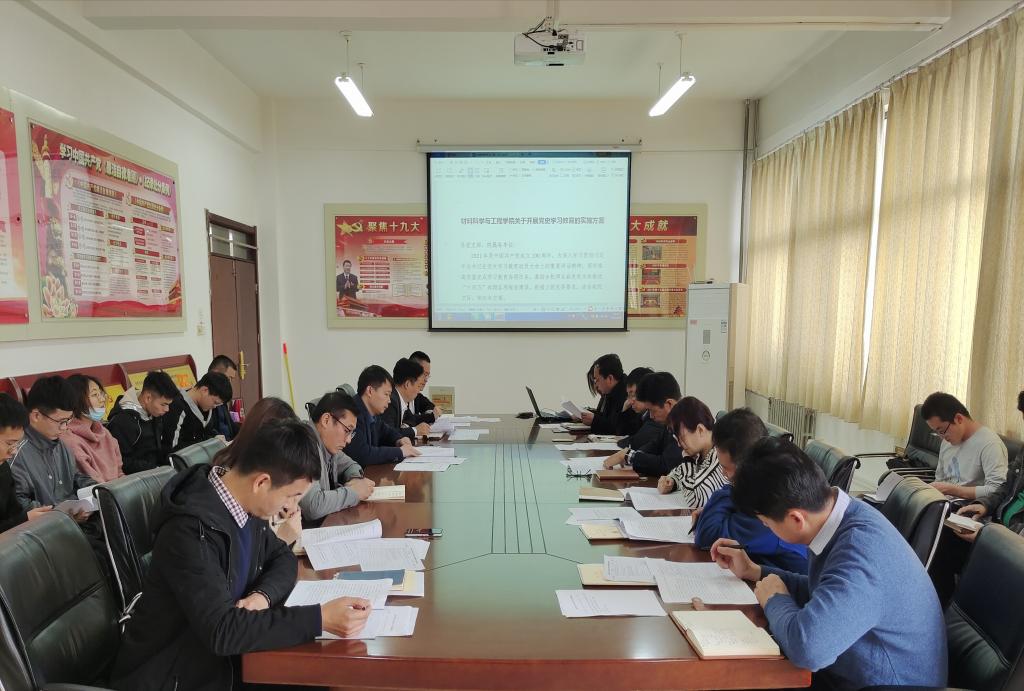 党史学习教育动员大会精神。学院专职组织员倪小鹏传达了《材料科学与工程学案关于开展党史学习教育的实施方案》以及实施方案任务清单。