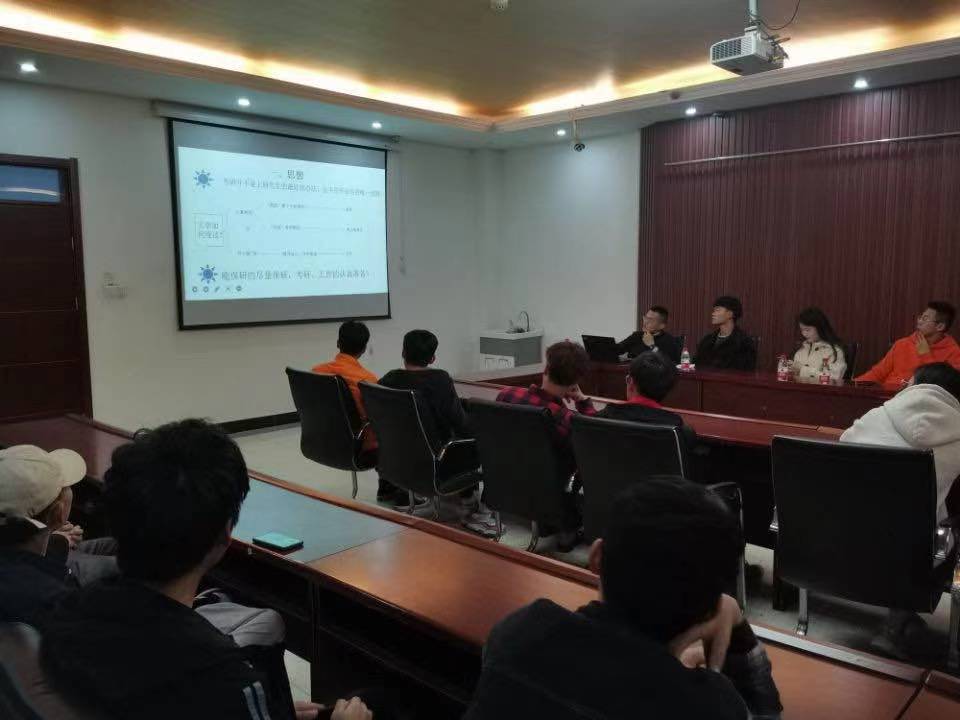 铸创精英宣讲团成员左君茹、张明杰、张艳艳、潘力子,在工科一号楼261为材成19级学子带来考研经验分享。