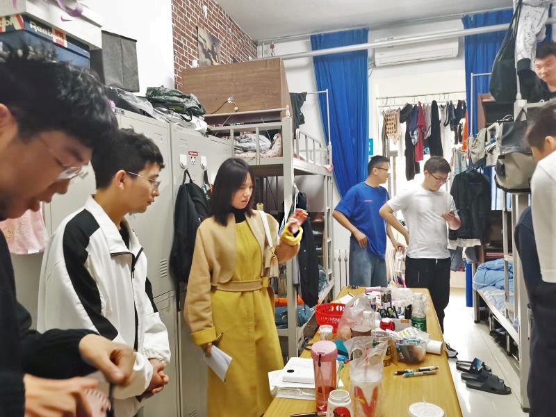 检查的具体内容包括:宿舍地面、阳台、墙面、桌面、床铺、物品摆放、宿舍文化建设、有无安全隐患等。检查中个别宿舍,还存在宿舍物品摆放较乱、不能及时拔掉手机充电器等问题,进行了详细记录并要求限期整改,提醒大家增强安全意识,自觉维护宿舍安全整洁。