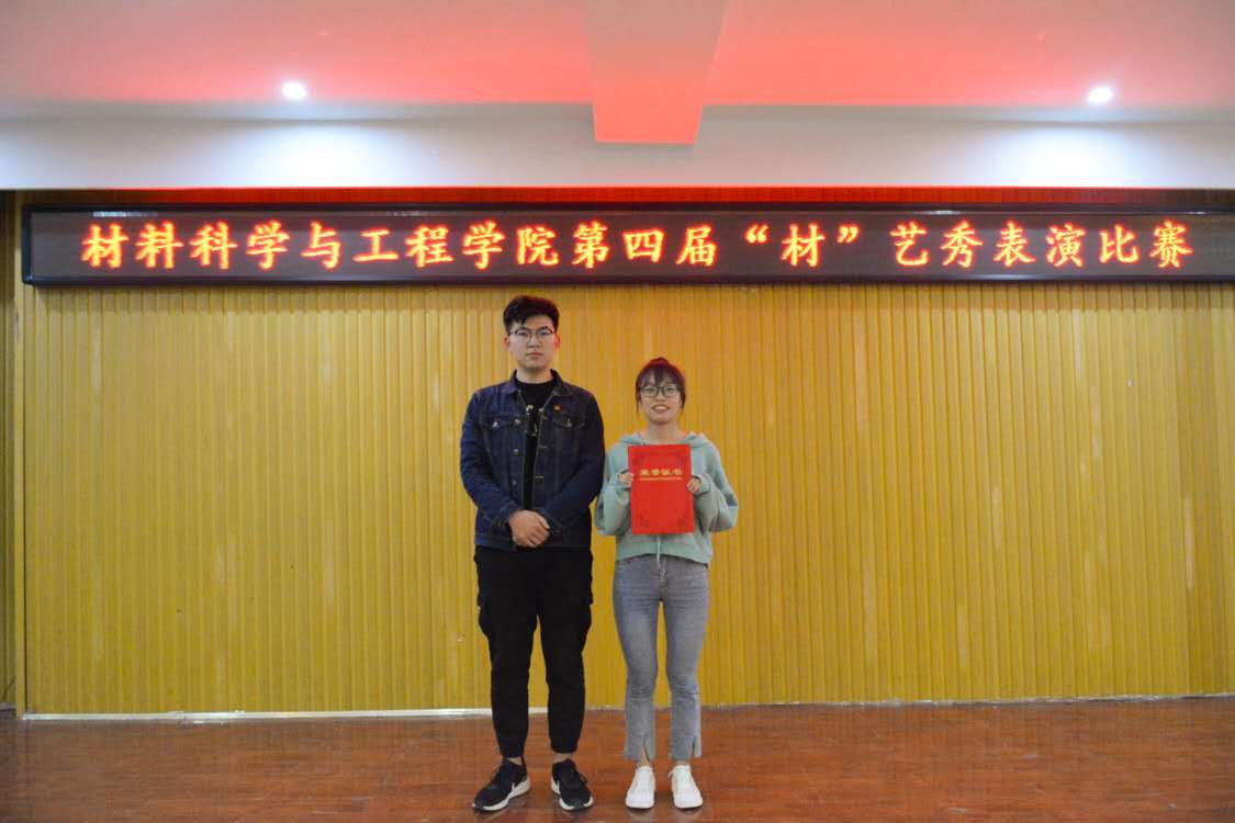 大赛由冶金201班郭一郴同学演唱的一首《桥边姑娘》拉开帷幕,11位同学依次登台亮相,评委老师一一发表点评。婉转空灵的洞箫表演,袅袅悠扬的钢琴演奏,趣味横生的相声表演,精彩炫酷的双截棍表演,风格多变的歌曲串烧和极富特色的白族舞蹈将现场气氛推向高潮。同时,锦弦吉他社成员即兴演奏为选手们助力加油。经过激烈角逐,材成209班杨小玲的歌曲串烧荣获大赛一等奖,材成204班张瑞的双截棍表演获得大赛二等奖,金卓201班段鹏基的舞蹈表演《霸王姬》与金卓201班李志成、李辉韬的相声表演共同荣获大赛三等奖。随后,工作人员分别为获奖选手颁奖并合影留念,材艺秀大赛圆满落幕。