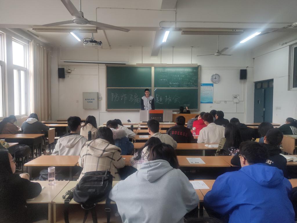 各年级积极召开学生干部会议和防范电信诈骗主题班会,辅导员通过具体案例介绍电信网络诈骗的特点,列举常见的诈骗手段,教会大家鉴别电信诈骗的方法,提高防范电信诈骗的能力,叮嘱同学们要牢记“八个凡是”,做到不轻信,不透露,不转账。以宿舍为单元,张贴防范电信网络诈骗明白卡,积极开展防电信诈骗知识学习。此外,学院发挥全体任课教师作用,在课前进行防诈宣传,反复向学生强调,切实提高学生防范意识,确保学院每位学生的财产安全。