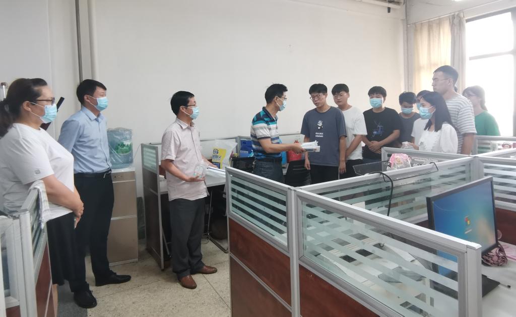 党委书记李怀民、院长张柯柯、副院长皇涛、辅导员李新利一行人走访工科一学院实验室,慰问学院暑期留校学生。