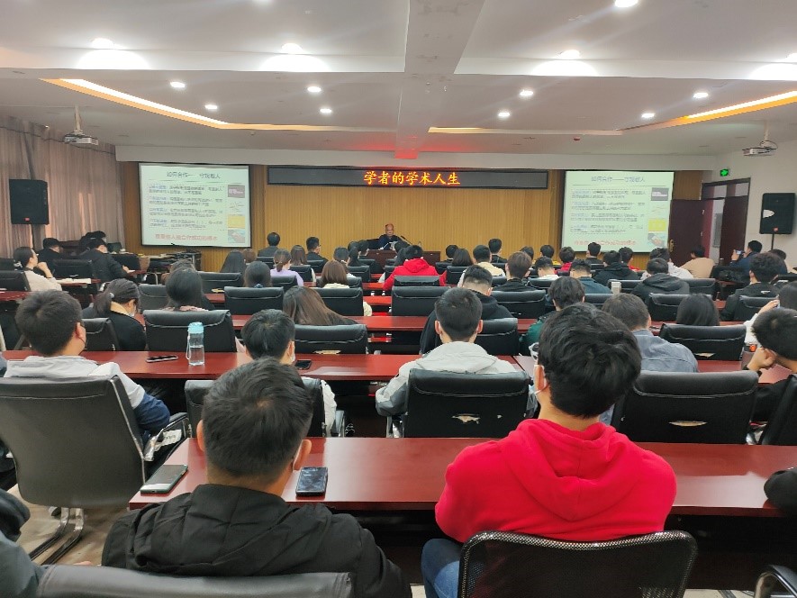 在工科1-5059报告厅举办了学者的学术人生学术讲座活动,主讲人为教授、博士生导师、中原学者张永振教授,共有 117名研究生参加本次讲座。讲座由副院长皇涛主持。