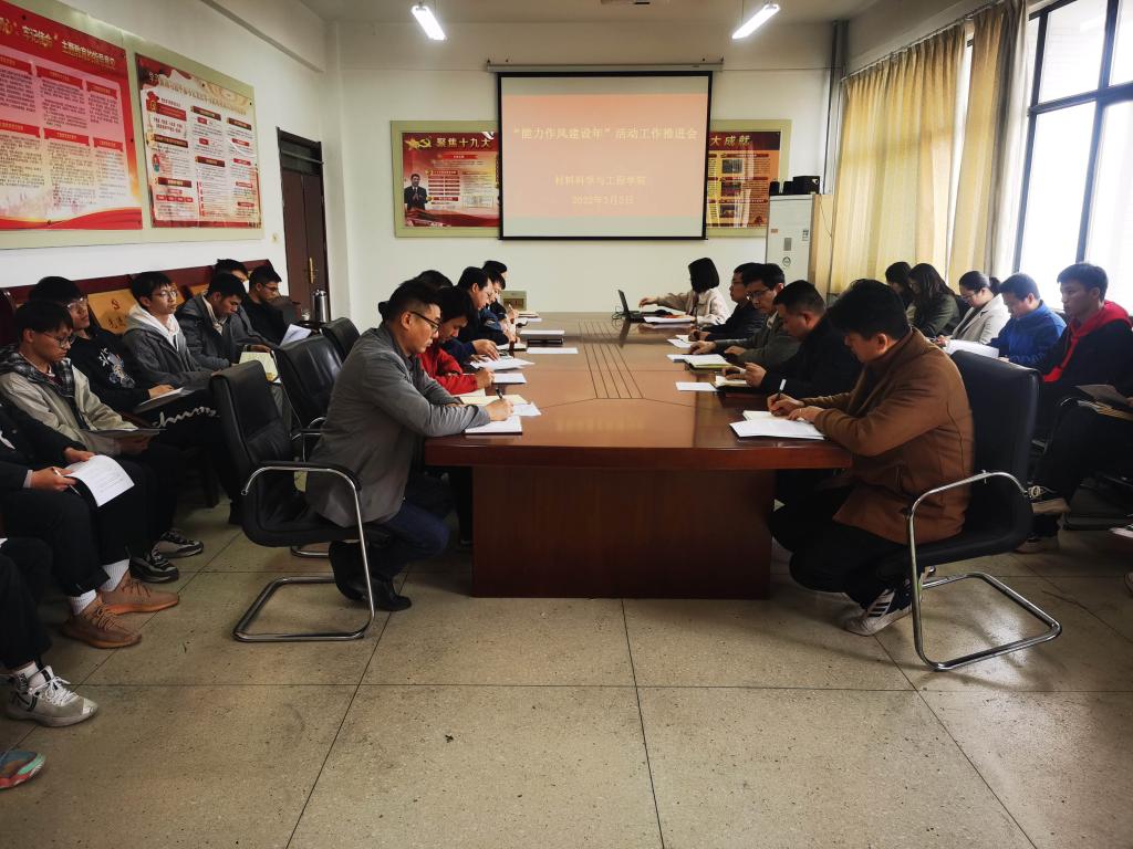3月3日下午,学院在工科一号楼203会议室召开“能力作风建设年”活动第二阶段工作推进会。学院全体班子成员、师生党支部书记、系主任、实验室主任、科研平台负责人参加会议,会议由院党委副书记贾海波主持。