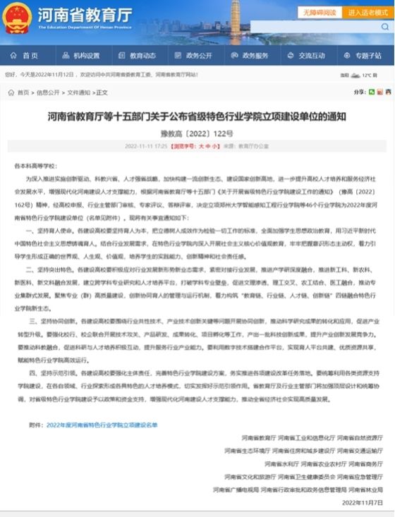近日,河南省教育厅等十五部门发布通知(豫教高[2022]122号)称,全省有46个特色行业学院获批立项建设,其中风车动漫p