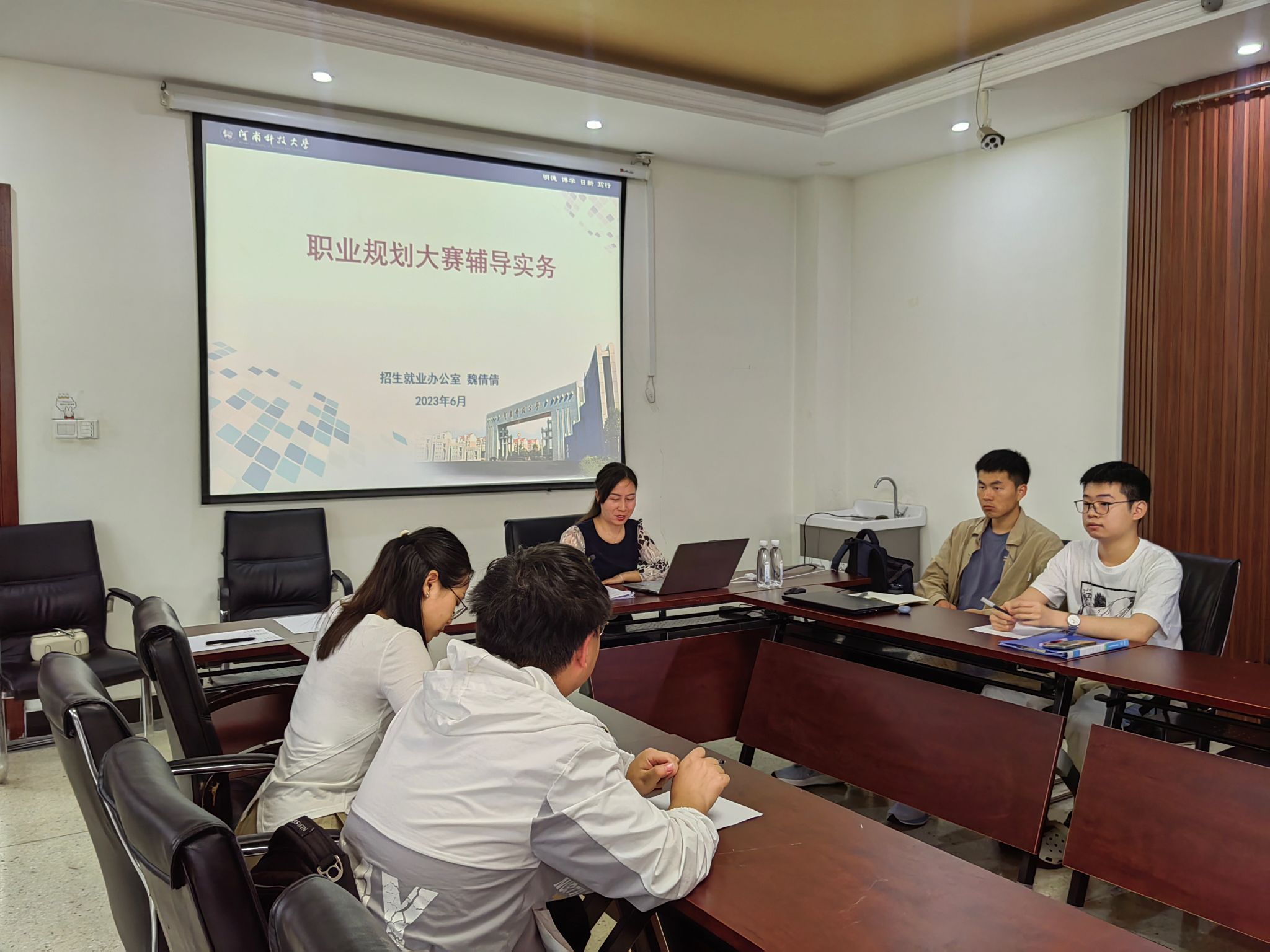 邀请招生就业办公室魏倩倩老师,对参加职业规划大赛的学生进行赛前培训。21级辅导员王琳霄老师和30余名学生参加