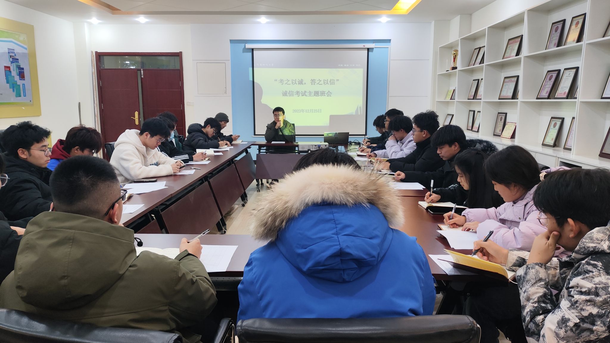 各年级辅导员组织学生以班级为单位开展“考之以诚,答之以信”诚信考试主题班会,增强学生诚信考试意识,营造和谐有序的考试氛围。