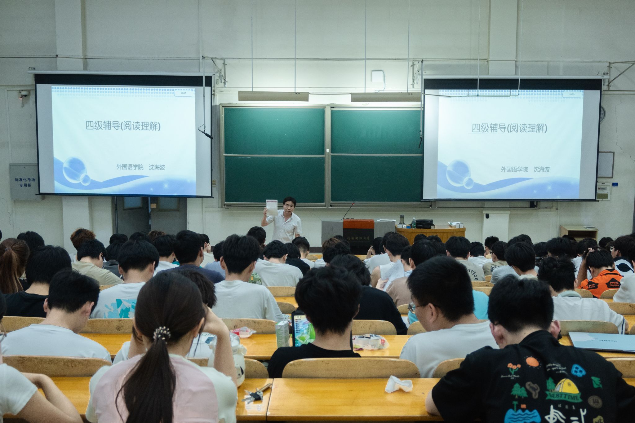 在公教四101、102教室举办英语四级系列讲座。讲座邀请外国语学院的沈海波、袁瑛、崔云波、王丽慧四位老师为同学们分享备考英语四级的学习方法。