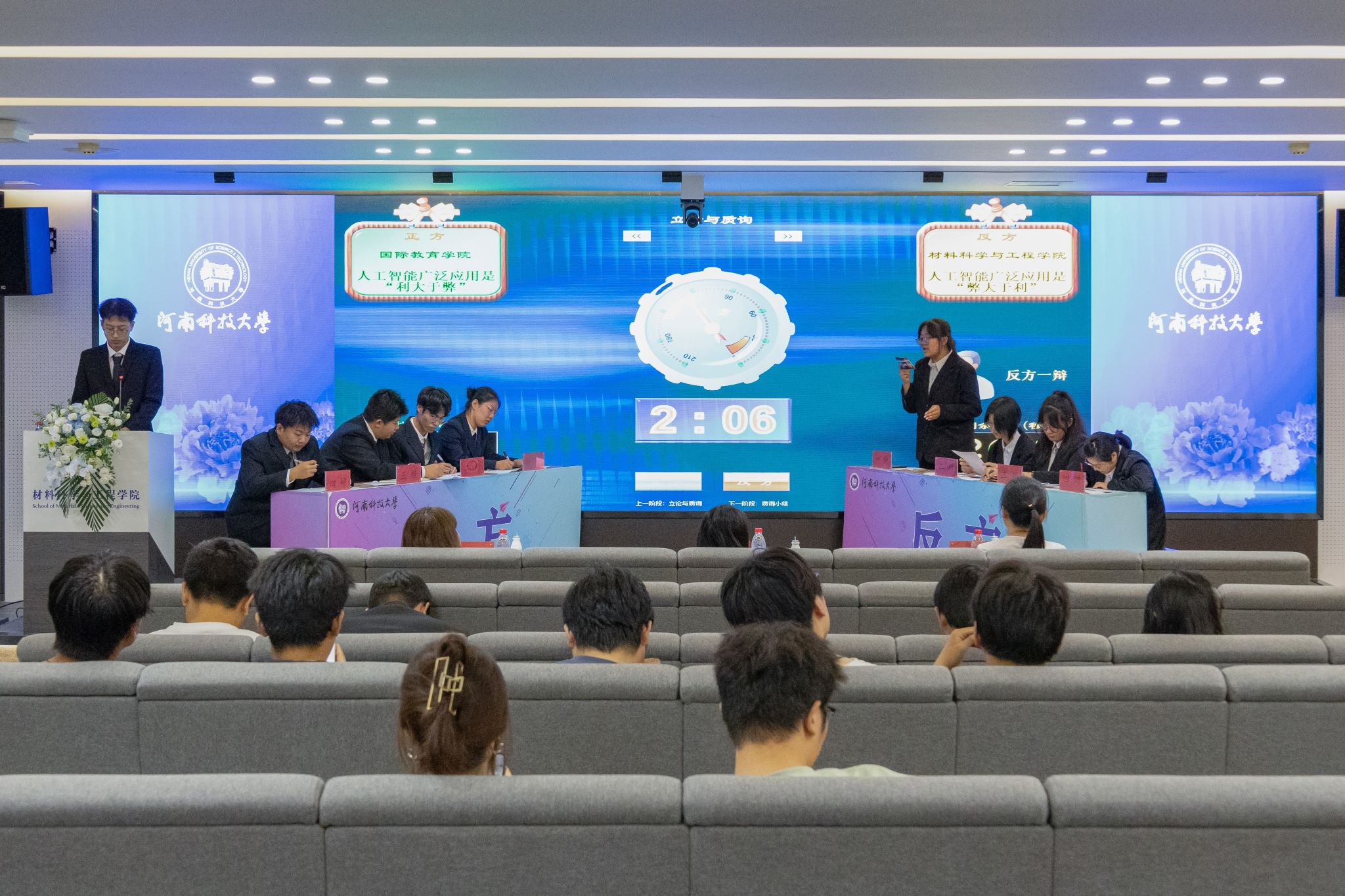 辩论队围绕人工智能广泛应用是“利大于弊”还是“弊大于利”。双方进行了激烈辩论,言辞精妙,思维敏捷。他们针对议题深入剖析,提出坚实的证据与并进行严密推理,力图说服在场的每一位观众。双方思想的碰撞,智慧的比拼,为我们带来了视听上的盛宴。