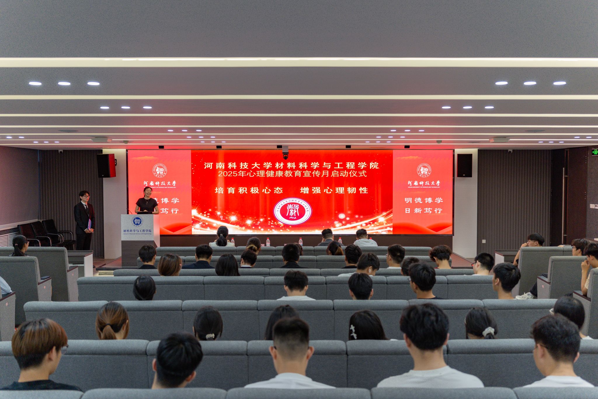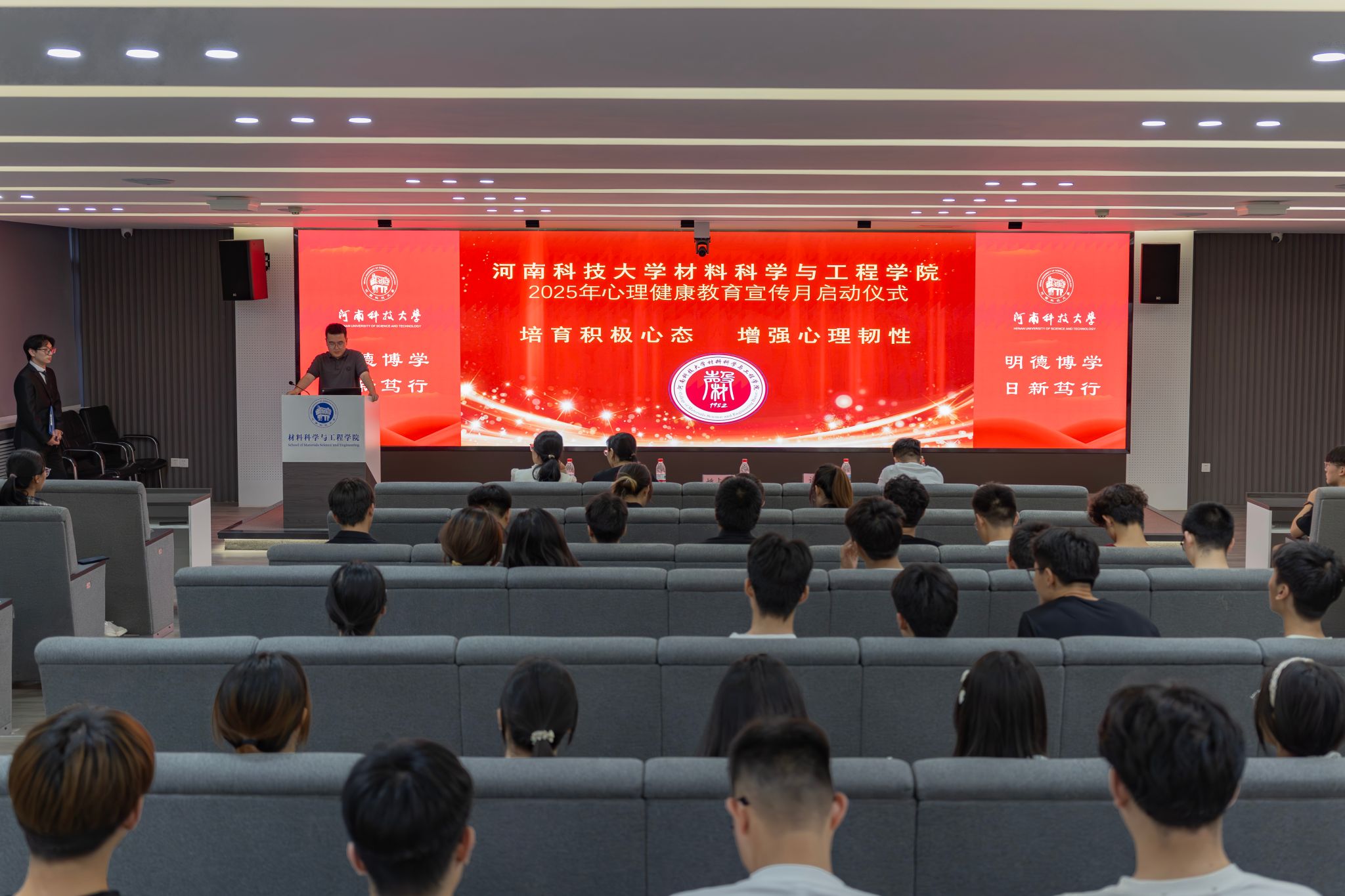 于工科一号楼5059报告厅举2025年心理健康教育宣传月启动仪式。心理健康教育中心心理发展教育科科长毛俊青、辅导员张欣、许傲、李帅龙及学生代表出席启动仪式。