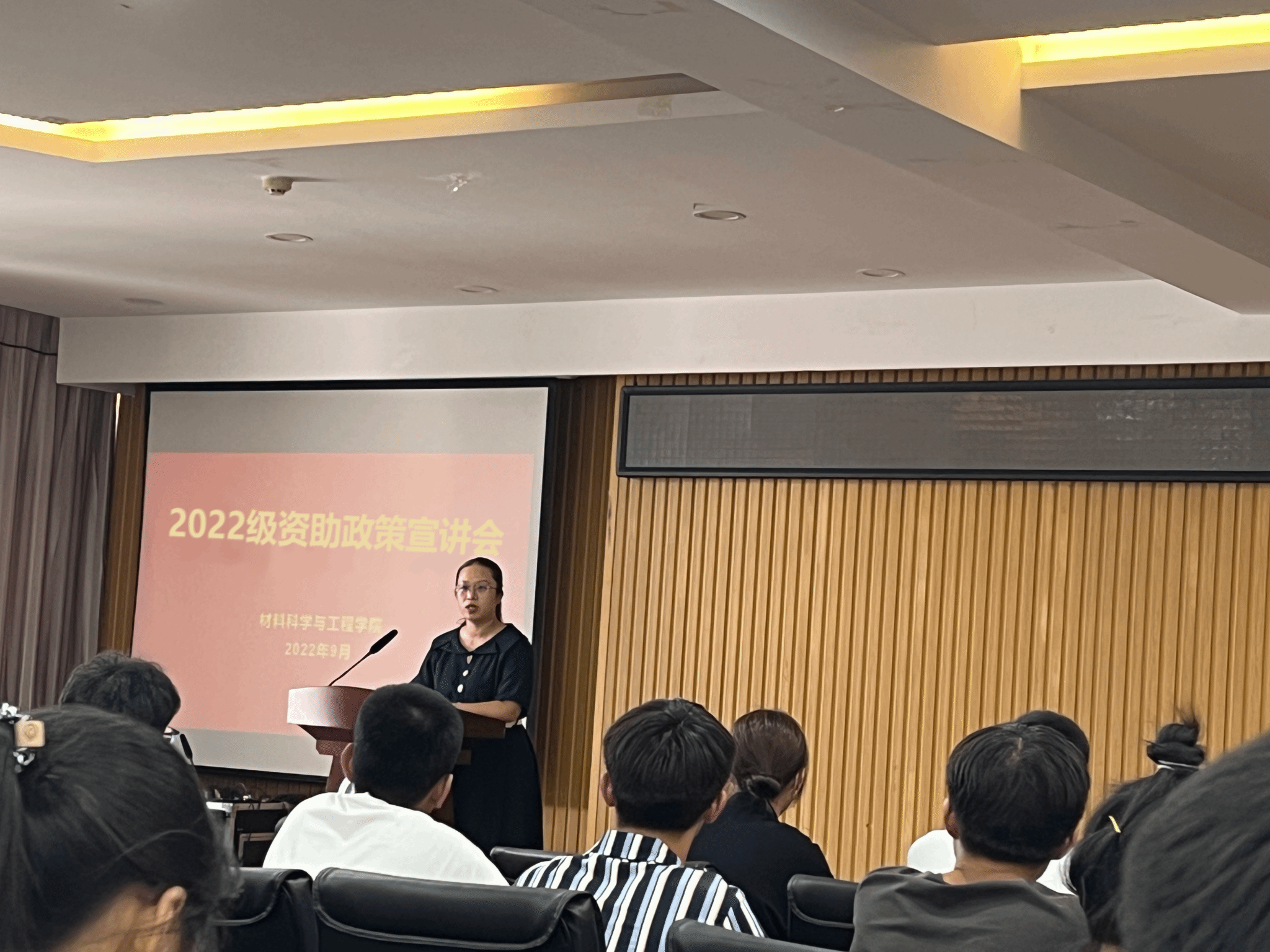 资助政策宣讲会在工科1-5059召开,2022级各班班委参加。宣讲会由辅导员李芳主持。