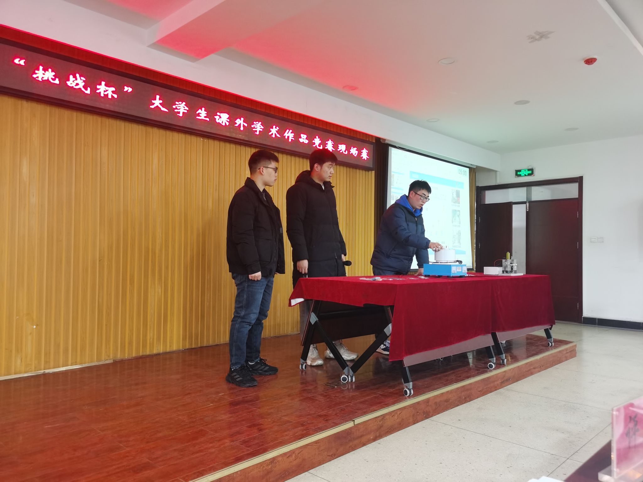 在工科一号楼5059报告厅举办2023年“挑战杯”大学生课外学术科技作品现场赛。前期经过线上网评,最终共有33项作品进入现场赛。