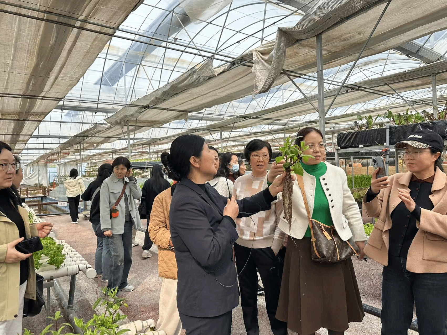 下午3:00大家乘车来到孟津十里香草莓总基地进行研学活动, 基地位于孟津区送庄镇朱寨村,是以农业观光、农业休闲功能为主,拓展乡村旅游、休闲采摘、科普文化、研学旅行、青少年校外技能体验等多功能的综合性休闲园区。园区经理为大家介绍了草莓的品种和采摘手法,各位女教工兴致焕发,在草莓大棚内尽情游览,时而三五成群拍照合影,时而分享采摘成果,感受着春天的气息,享受着闲暇的惬意,交流着各自的愉悦和彼此的关爱。