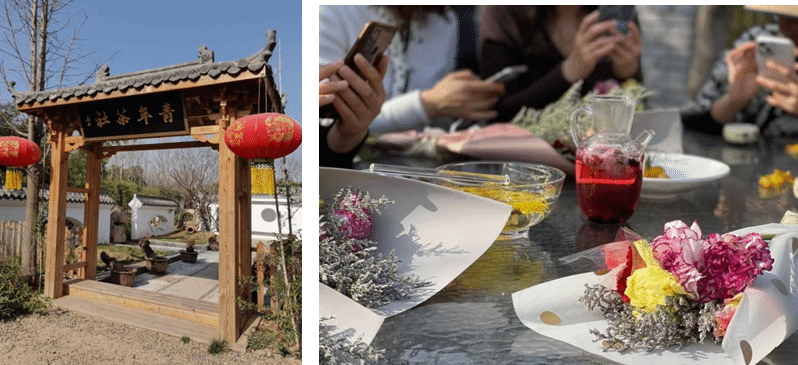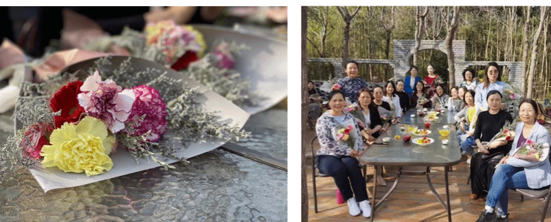 下午3:00大家在从政坊公园门口集合,沿着园内蜿蜒的小径,迎着和煦的春风怡然自得地漫步到青年茶社内。各位女教工精神焕发,在结束花艺活动后,在公园内赏春光、闻花香、品茶味,时而三五成群拍照合影,时而畅谈工作生活,感受着春天的气息,享受着闲暇的惬意,交流着各自的愉悦和彼此的关爱。