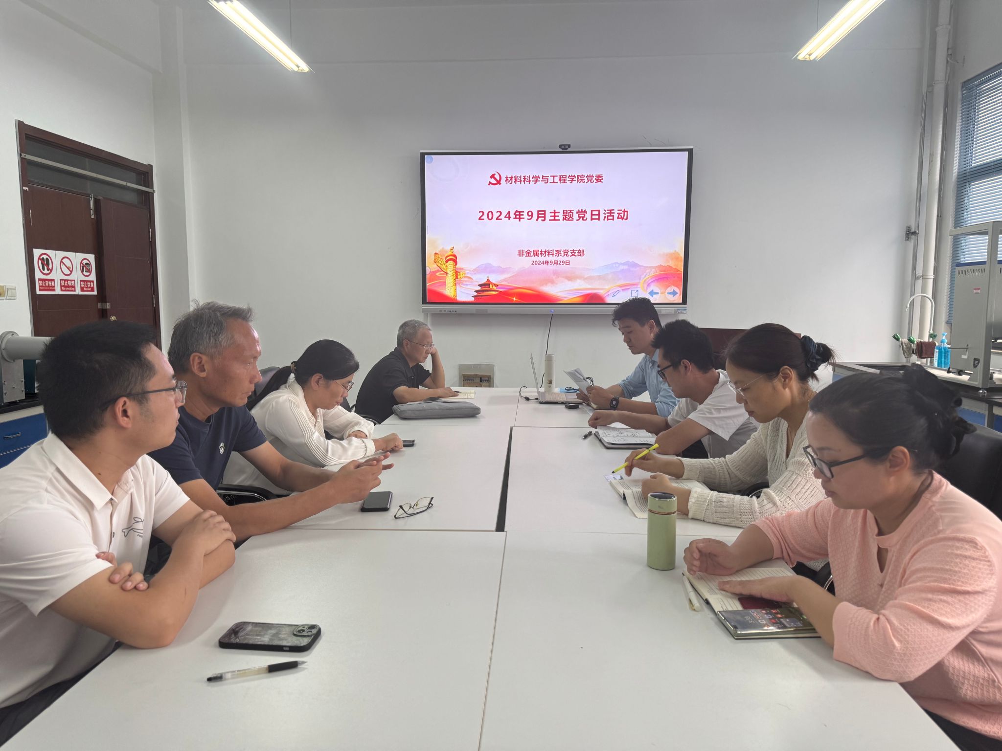 9月29日下午,非金属材料系党支部在工科1-418室开展“弘扬教育家精神 强化育新人担当”主题党日活动,活动由支部书记柳勇主持,学院党委书记李怀民作为普通党员参加支部活动。