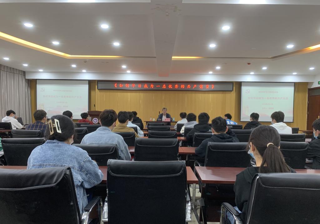 管理学院党委书记郭培智,在工科1-5059报告厅讲授以“如何早日成为一名优秀的共产党员”为主题的专题讲座。讲座由学院团委书记、本科生2020级辅导员姚占杨主持,学院党委承办的校党校第三分党校第39期入党积极分子培训班学员代表参加。