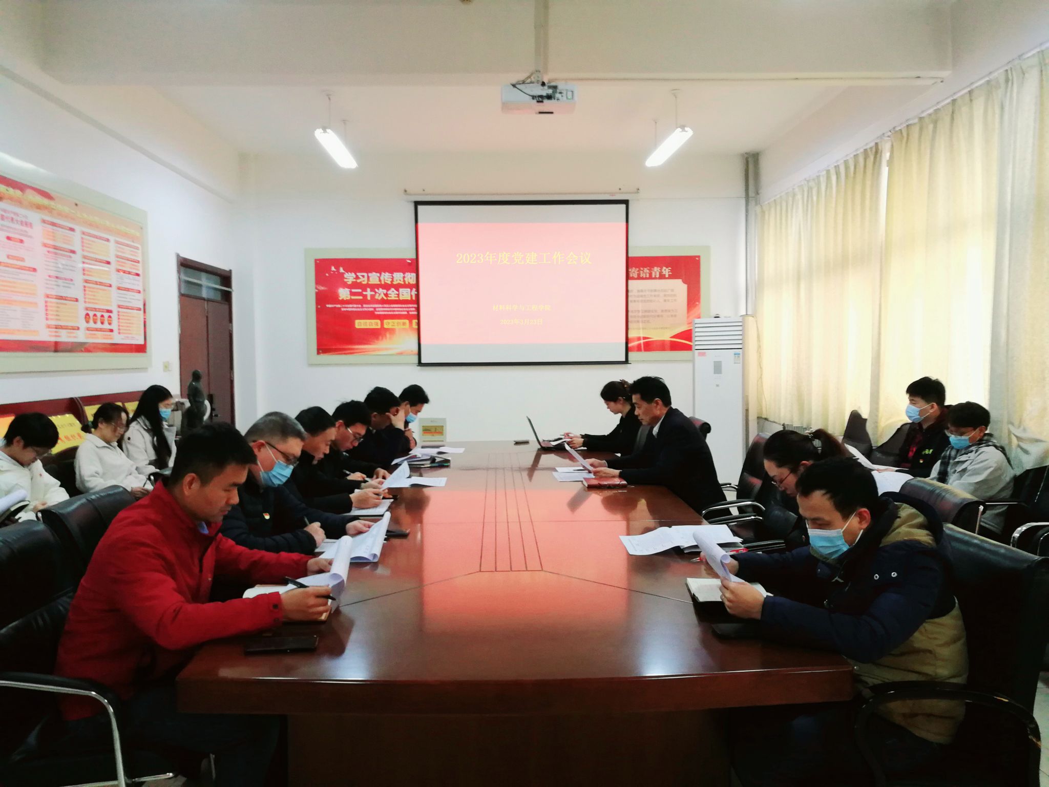 在工科1号楼203会议室召开2023年度党建工作会议,学院全体师生党支部书记参加会议,会议由学院党委书记李怀民主持。