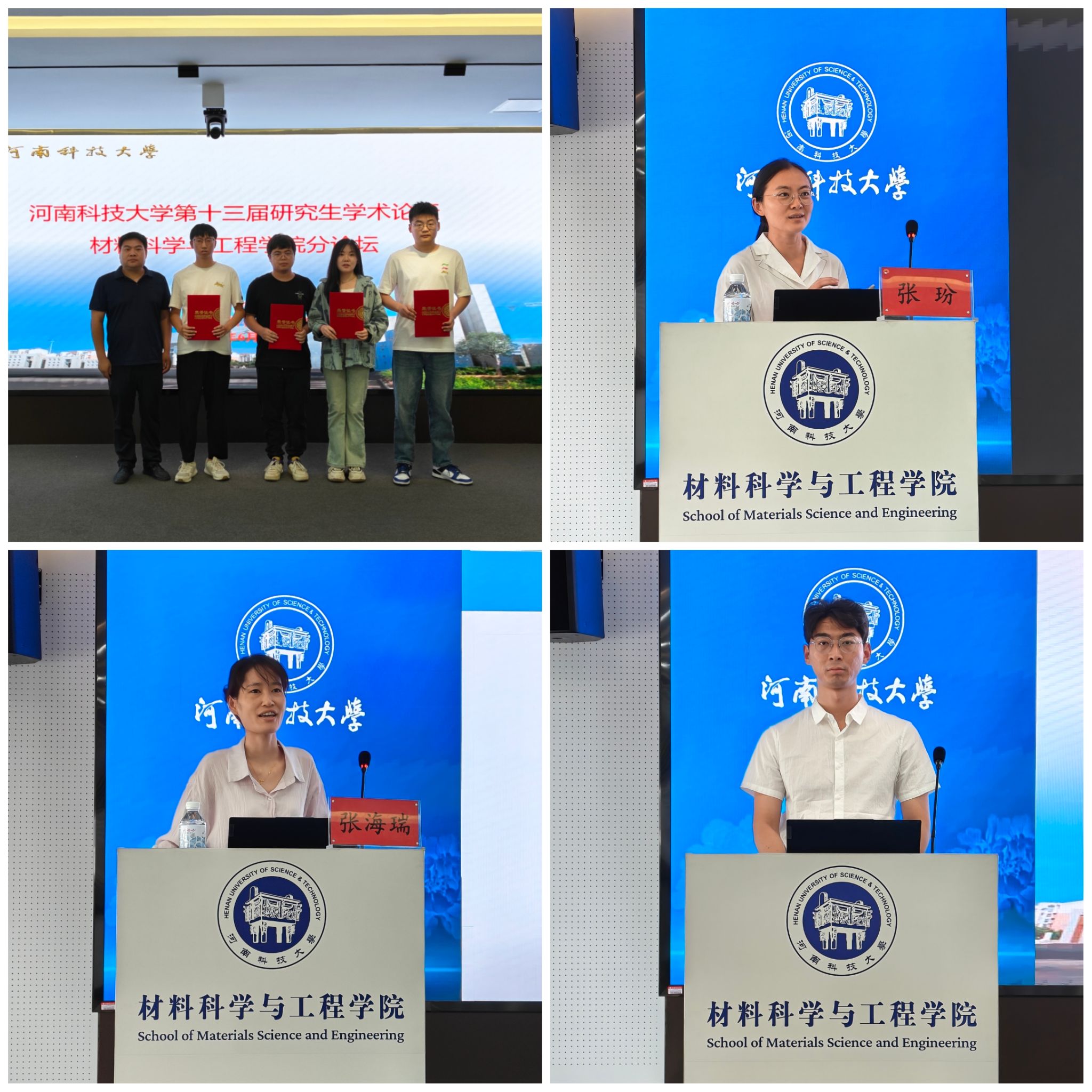 张玢博士和张海瑞博士,分别作了题为《新材料引领科技创新》《Research Progress and Applications of NiTi Alloys for Medical lmplants》《储能、催化材料的可控构建和催化机理》《微织构和异构组织粉末冶金钛合金的力学行为》的学术报告,详细介绍了各自领域的前沿研究内容、先进技术方法和最新科研成果,为研究生开展学术科研提供较好借鉴作用。论坛上,优秀研究生代表张有程结合自身研究经历分享了学习心得,为低年级研究生开展课题研究和成果发表提供了宝贵的经验。学术论坛优秀征文获奖代表蒋孝洁、王东振、郭希宽和侯振国同学,分别就论文的研究背景、理论基础、实验构思和结果讨论等方面进行了交流汇报,论坛评委老师对获奖征文进行了点评并提出了修改建议,副院长李军波向获奖同学颁发了荣誉证书。